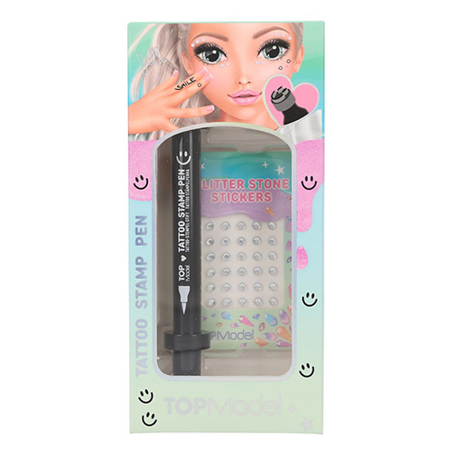 A Top Model kreatív tetováló szettje markerrel és strasszkövekkel rendelkezik. A marker egyik oldalán egy bütykös hegy van, a másik oldalán pedig egy bélyegző egy képpel. Azok a lányok, akik szeretik a saját stílusukat, és szeretnek a saját fantáziájuk szerint tervezni, gyönyörűen díszíthetik a testüket.