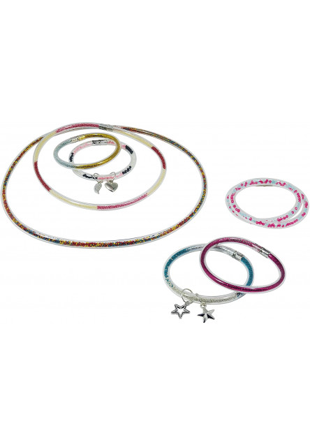 A BeTeens készleteket olyan kreatív lányoknak terveztük, akik szeretnének eredetiek lenni és saját ékszereket készíteni/alkotni. A Sparkly Jewellery Kit 7 ékszer (karkötők és nyakláncok különböző csillogó motívumokkal és medálokkal) elkészítéséhez szükséges folyamatot és kiegészítőket tartalmaz.