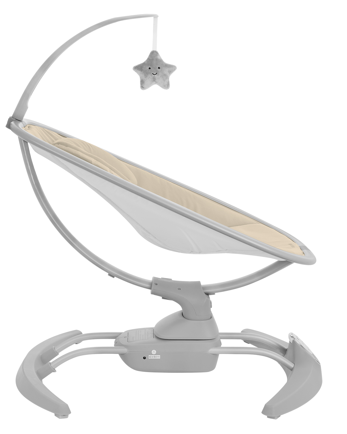 A KikkaBoo Spinny hintaló zenélő dobozával a babát oldalról oldalra ringathatja. A zenélődoboz nyolc dallamot és nyugtató természetes hangokat kínál hangerőszabályozással. A fekvőfelület fölött egy levehető karra függesztett játék figyelésre csábítja a babát. A nyugágy távirányítóval vezérelhető.