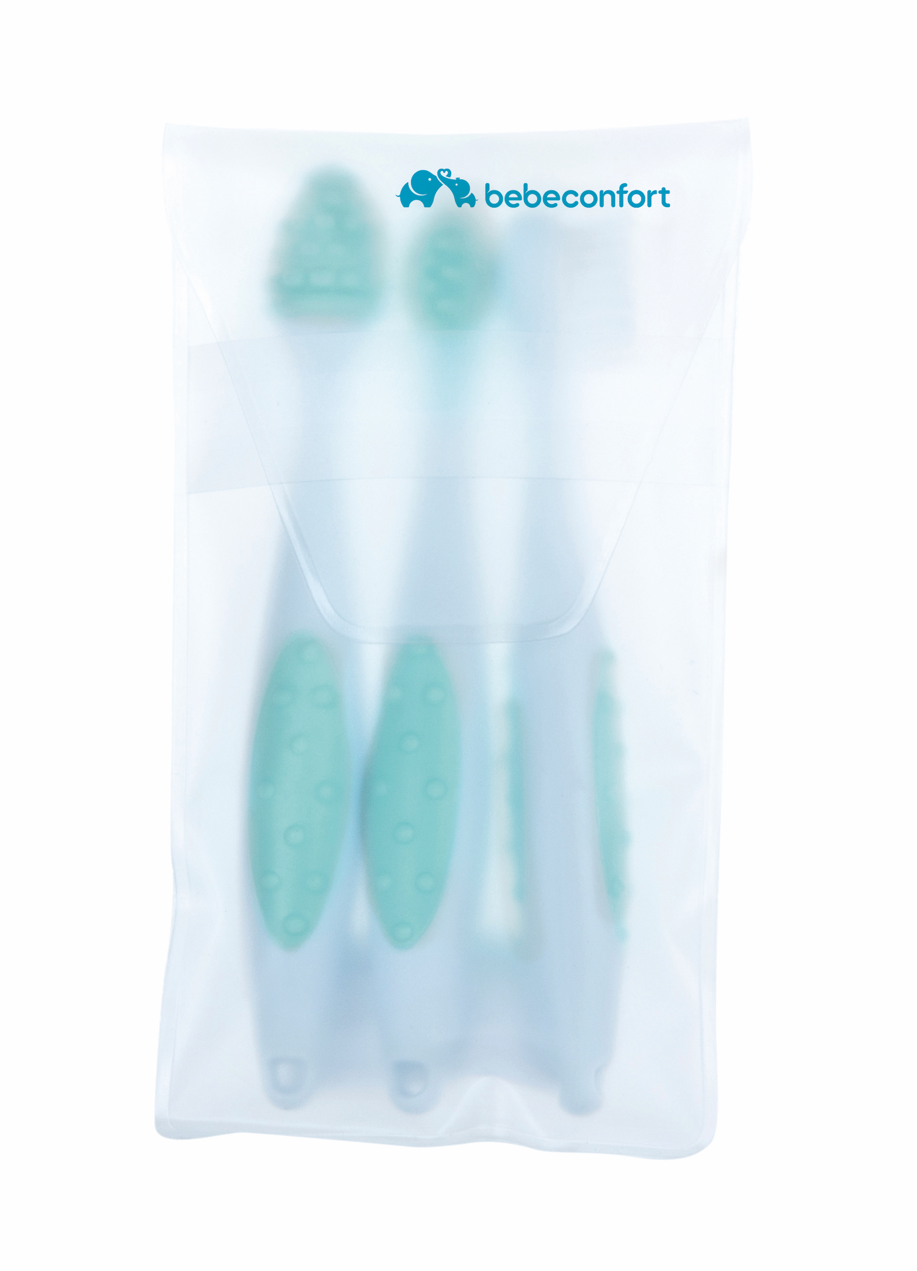 A készlet tartalmaz egy masszázskefét a baba fogzás előtti ínyére, egy masszázskefét az első fogakra és az érzékeny ínyre, valamint egy kisgyermekkefét a klasszikus fogmosáshoz. A kefék fogantyúja megkönnyíti a fogást.