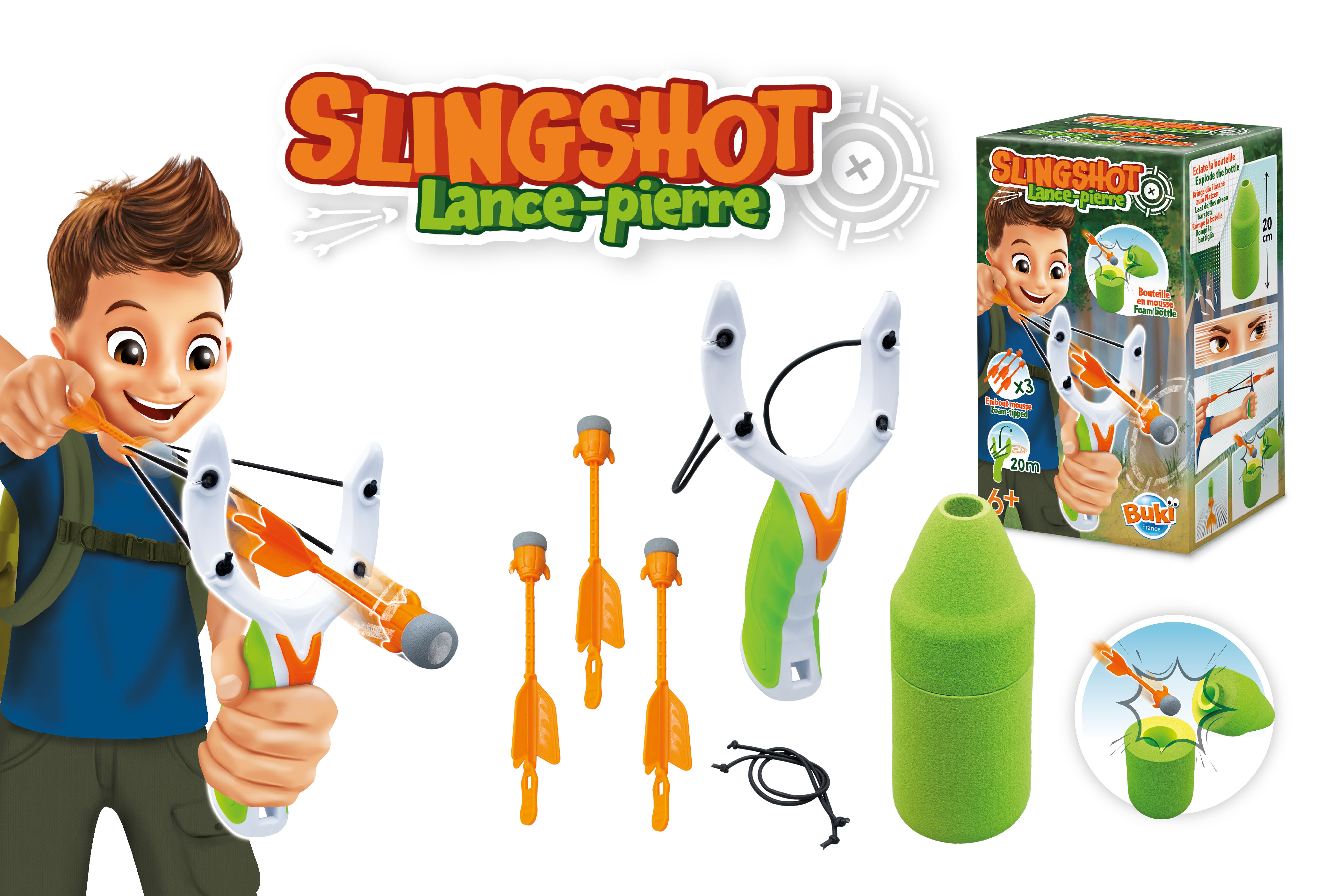 Ez a készlet tartalmaz egy csúzlit, 2 tartalék gumiszalagot, 3 habszivacs hegyű dartsot és egy kétrészes lövőkúpot, amely találat esetén szétesik. Szórakozással lőheted le a konzervdobozokat, PET-palackokat vagy kartonból készült célokat. A játék versenyszerű lövészethez használható, kb. 15-20 m-es távolságból történő pontos lövészethez.