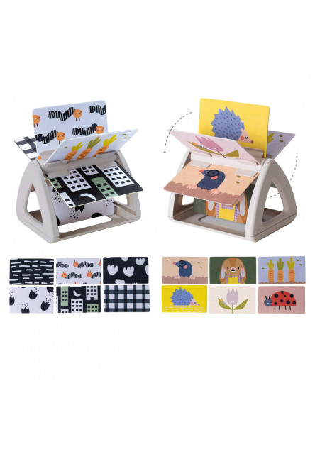 Az eredeti lapozható könyv gyönyörű illusztrációkkal a kerti élet témáiról különböző típusú képeket kínál a gyermek három fejlődési szakaszához: