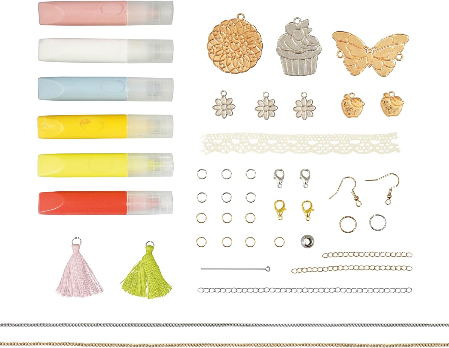 Készítsd el saját ékszereidet eredeti medálokkal a kreatív készlet segítségével! Ez a csomag mindent tartalmaz, ami színes és egyedi ékszerek készítéséhez szükséges, amelyeket szíved szerint személyre szabhatsz.