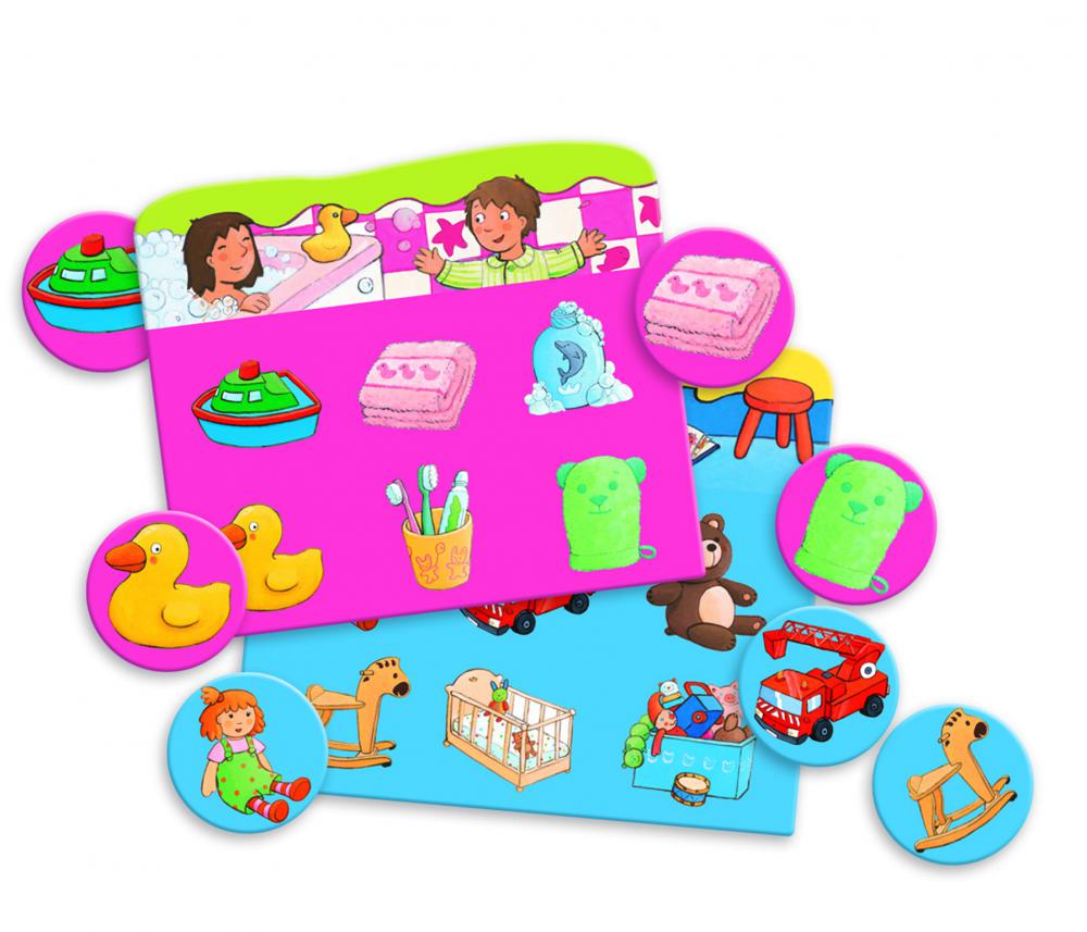 Képeslottó, fejlesztő játék Csoportosítást, főfogalom alá rendezést segítő és a szókincset gyarapító játék. A különböző szobákat megjelenítő képek és a szobaképekhez tartozó kis képsorozatok mind az egyéni, mind a társasjátékot lehetővé teszik. A memória játék szabálya szerint lefordított képekkel játszható. A csoportosítást segíti a képek hátterének a színe. A játékhoz 5 szobaképet megjelenítő kép és 5 x 5 darab tárgyakat ábrázoló rajzkép tartozik. A kis képsorozat képeinek megtalálásával és megfelelő szobához, fürdőszoba, gyerekszoba való társításával fejlődik a gyermek figyelme, gondolkodása, emlékezete és bővül a szókincse. Évtizedek óta kedvelt társasjáték a Képeslottó, Az Otthon képkirakó az óvodáskorúaknak készült változat. Tartalma: 5 db kirakótábla 25 db állatfigurás korong Doboz mérete: 14,5 x 14,5 x 14,5 cm Anyaga: keménykarton