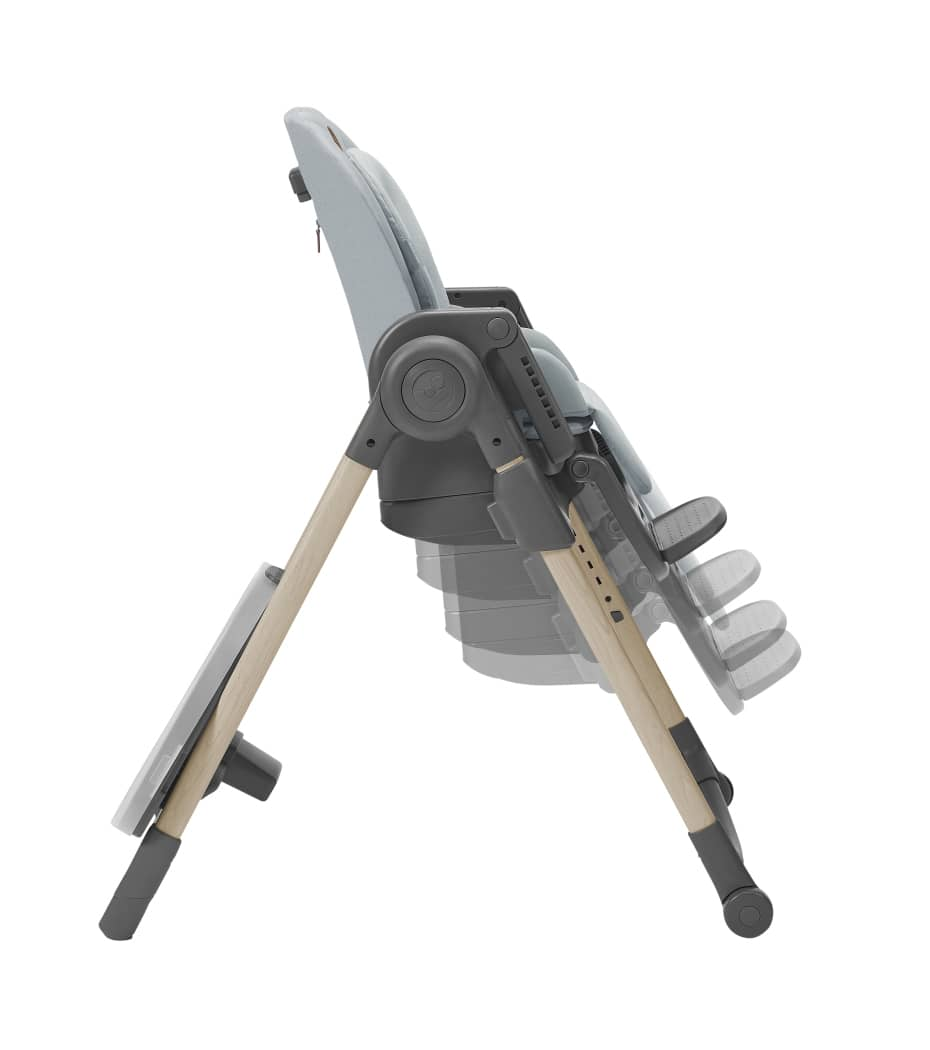 A szék 9 magasságállítással rendelkezik, így szinte bármilyen asztalhoz alkalmas. A háttámla 5 különböző pozícióba állítható a fekvéstől az ülésig. Az állítás variálhatóságát 4 lábpozíciós variáció és 2 lábtartó pozíció egészíti ki. Az étkezőpult 4 különböző felhasználási lehetőséget kínál, és a szék hátsó lábaira akasztható. Az étkezőpulton található kivehető tálca megkönnyíti a karbantartást étkezés után.