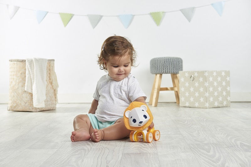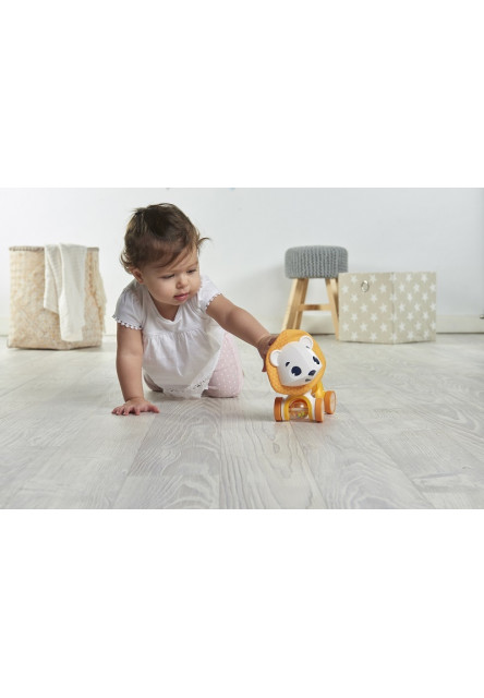Az imádnivaló oroszlán alakú játék a nyúlékony harmonika testtel és a forgatható kerekekkel az első pillanatoktól kezdve a pocakban fekvéstől kezdve a mászáson és az önálló ülésen át az első lépésekig szórakoztatja a babát.