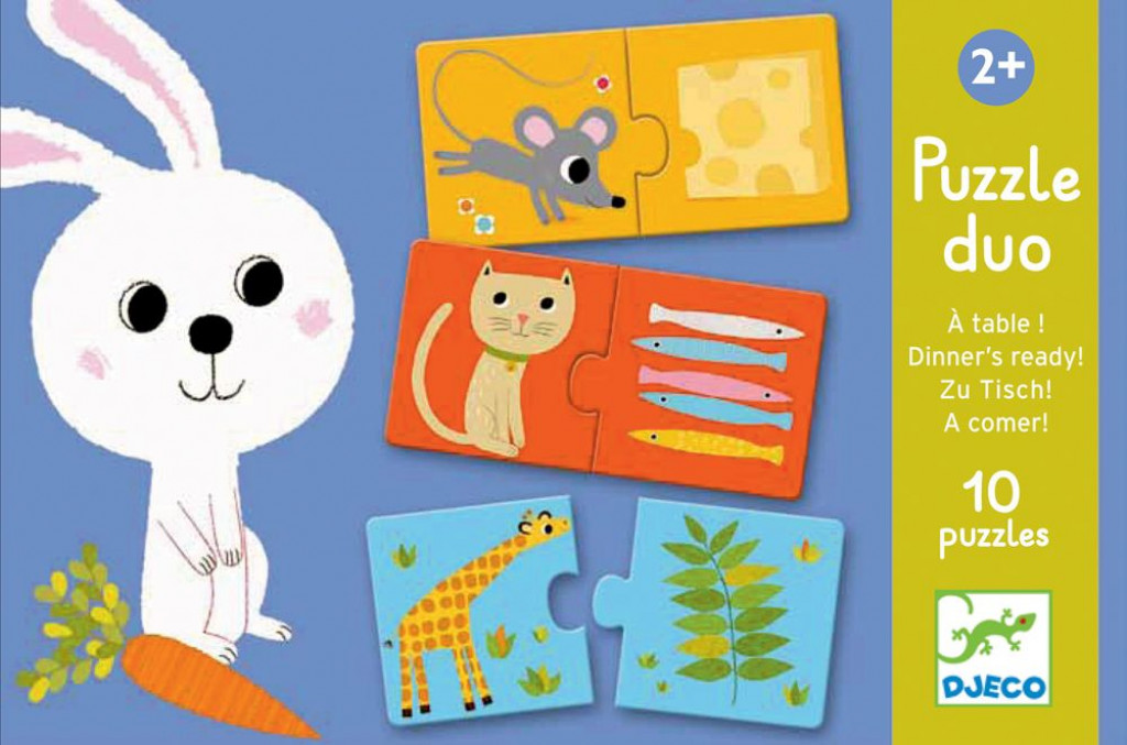 Itt a vacsora idő, etesd meg az állatokat! Játék közben a legkisebbek megtanulhatják a különféle állatok és kedvenc eledelük neveit. Feladatod, hogy megtaláld a megfelelő állatfigurához a megfelelő eledelét és összeilleszd azokat! Franciaország egyik legismertebb játékforgalmazó cégének terméke, mely a legmagasabb minőségi szintet éri el, 2 éves kortól ajánlott. Ötletes, fejlesztő, kiváló ajándék! Tartalma: 20 darab (10 puzzle).