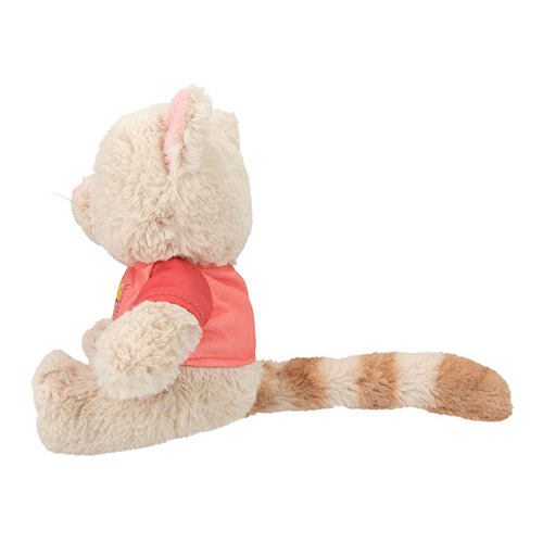 Plyšová cica nagyon pr´puhaá tapintású és má Yummie nábetűtípussal ellátott pólót visel.