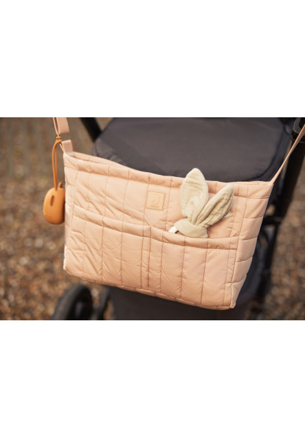 A kellemes, steppelt anyagból készült, párnázott és eredeti pöttyös béléssel ellátott babakocsi-szervező számos belső és külső zsebet kínál, amelyekben rendezetten megszervezhet mindent, amire a babával való sétákhoz és kirándulásokhoz szüksége van. A vállpánt lehetővé teszi, hogy a vállon átvetve, valamint a babakocsi fogantyújára akasztva is hordható legyen. A szervező cipzárral záródik.