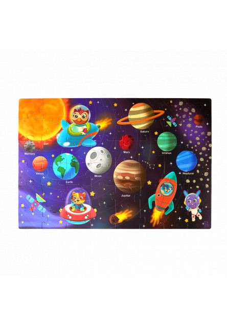 Készülj fel egy űrutazásra a naprendszert, űrhajókat és barátságos állatos űrhajósokat ábrázoló gyönyörű illusztrációkkal ellátott maxi puzzle-vel! Az extra nagyméretű, tömör kartondarabok 91,4 x 60,9 cm-es területet alkotnak, így ideálisak a padlón való hajtogatáshoz.