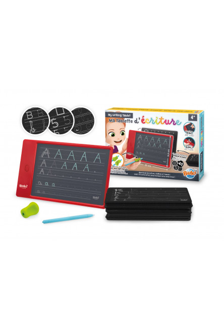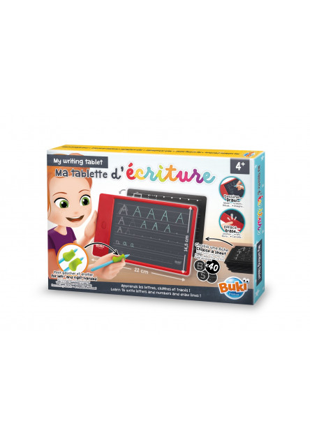 Elektronikus tábla a betűk és számok rajzolásához és írásának gyakorlásához 40 sablon és ergonomikus érintőtoll segítségével.