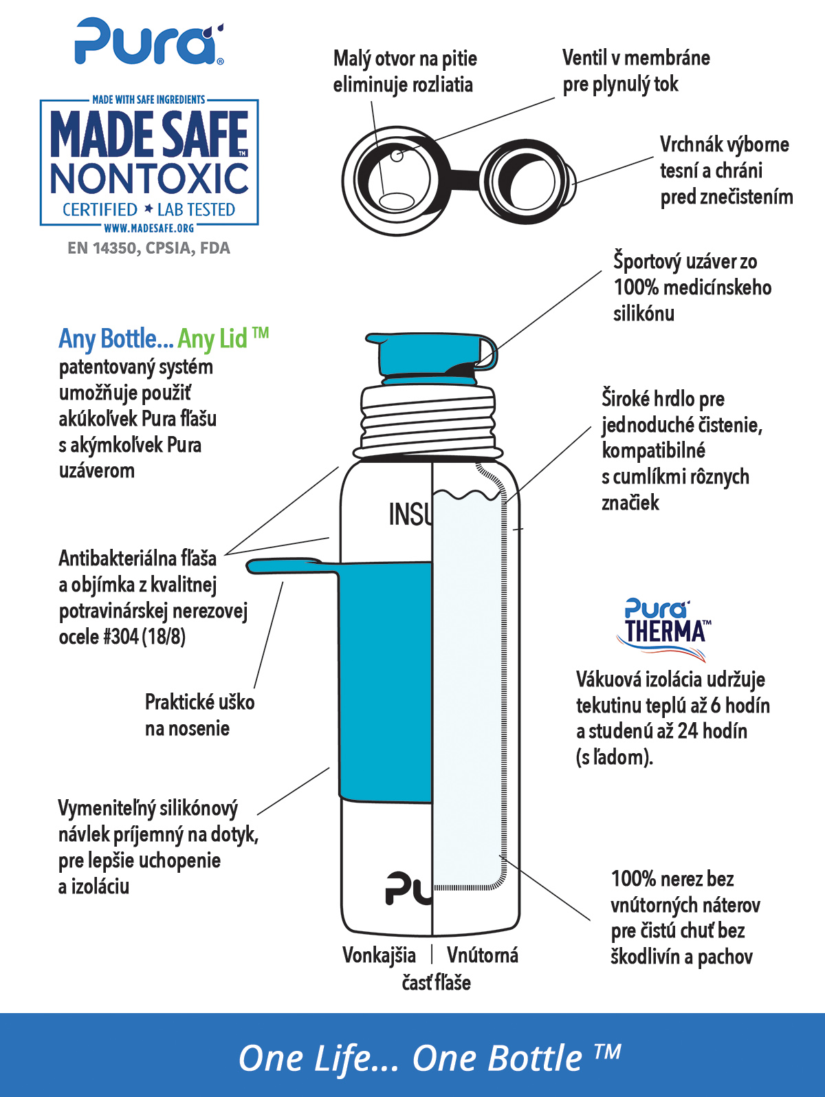 Pura THERMO kulacs sportkupakkal 650ml (Aqua)