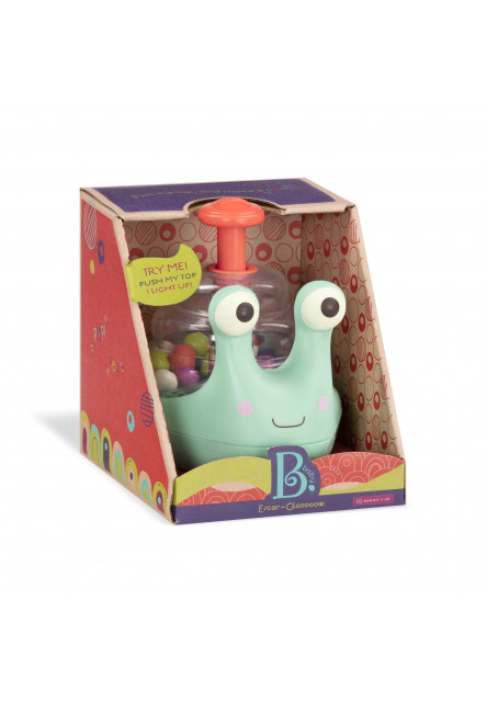 Eredeti játék egy kerekeken guruló csiga formájában, amelynek átlátszó héja tele van színes golyókkal, amelyek a kar megnyomásakor pattogatott kukoricaként repkednek a héj belsejében. Ugyanakkor a belsejében színes fények villognak a még nagyobb hatás érdekében.