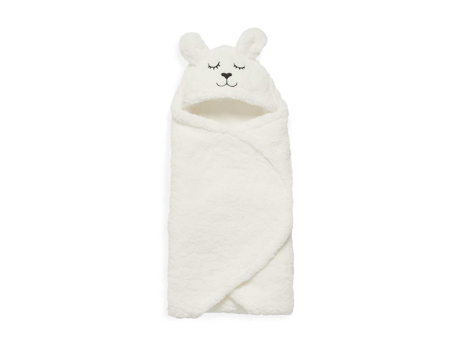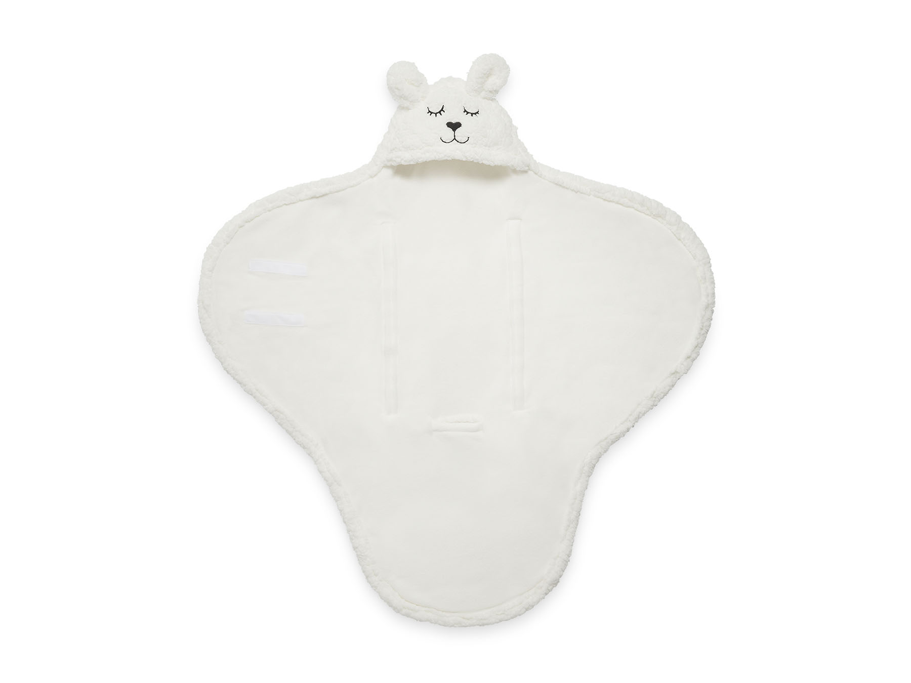 A puha gyapjú anyagból készült tekercs lehetővé teszi a baba gyors és egyszerű bebugyolálását, biztosítva a biztonság, a melegség és a kényelem érzését. A kapucni melegséget biztosít a fejnek akkor is, ha a baba hidegebb környezetben alszik. A pólya tépőzárral rögzíthető.